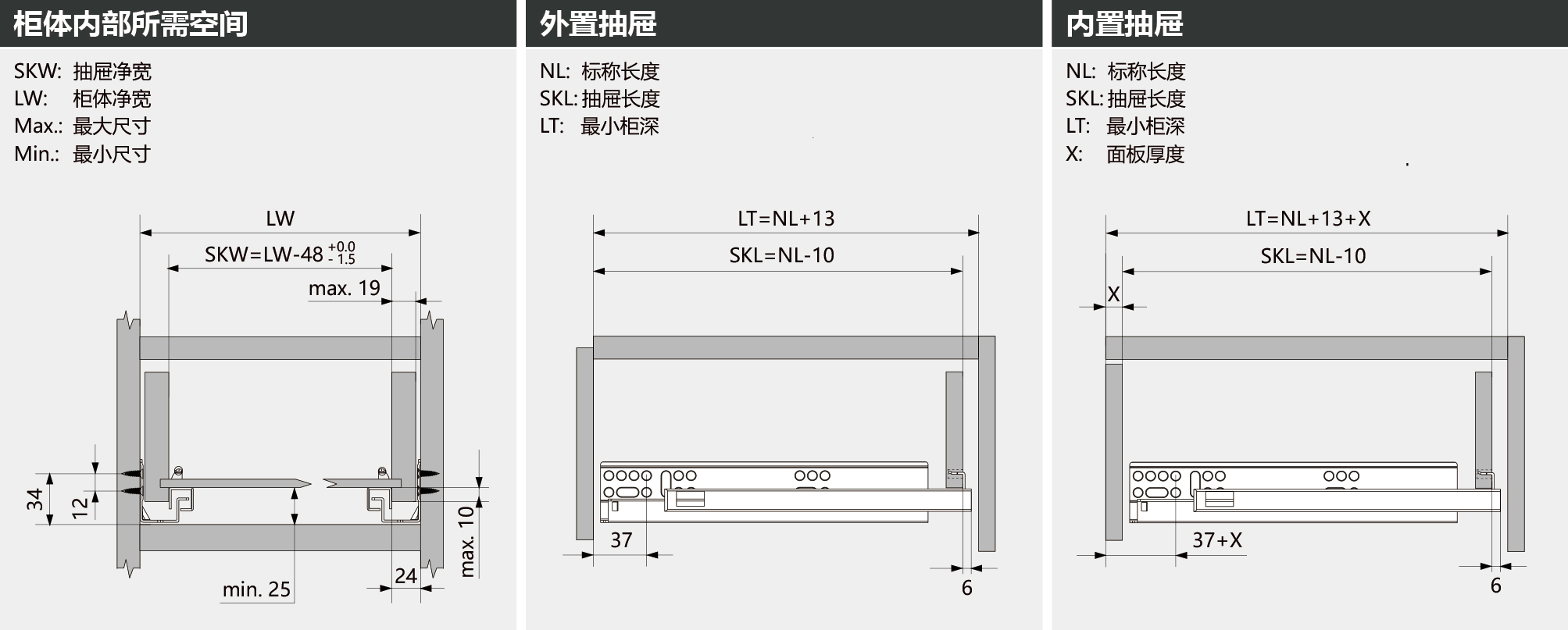 | 滑轨型号 | 滑轨标称长度NL(mm)/描述 | 单位 | 拉出长度 |