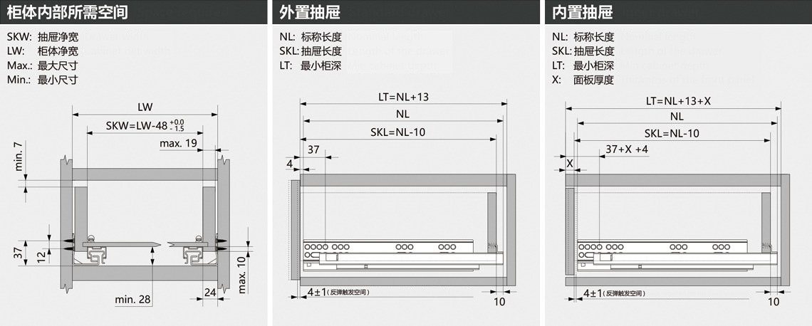 半拉/全拉 | 侧板厚度 | 抽屉调节 |